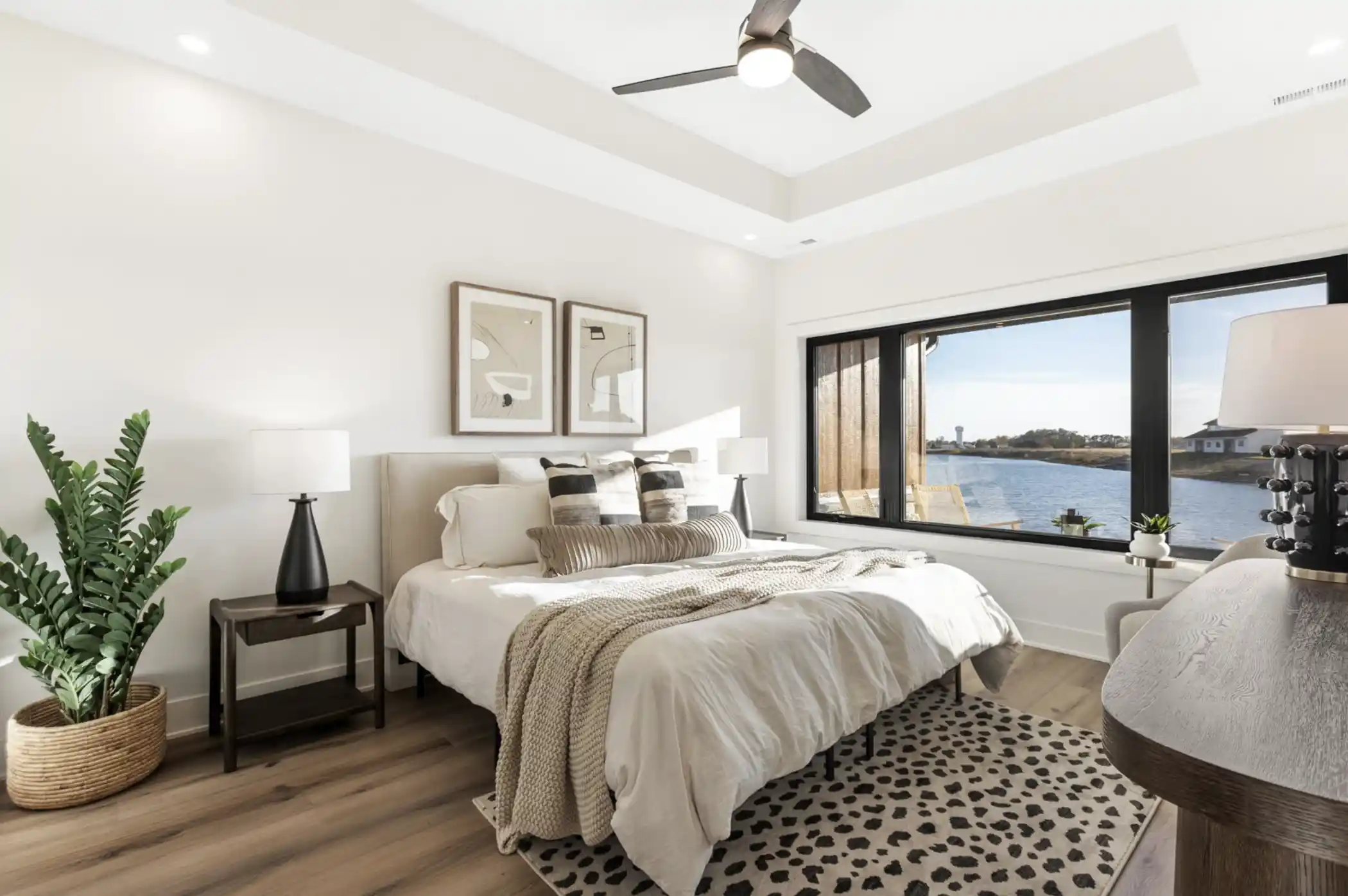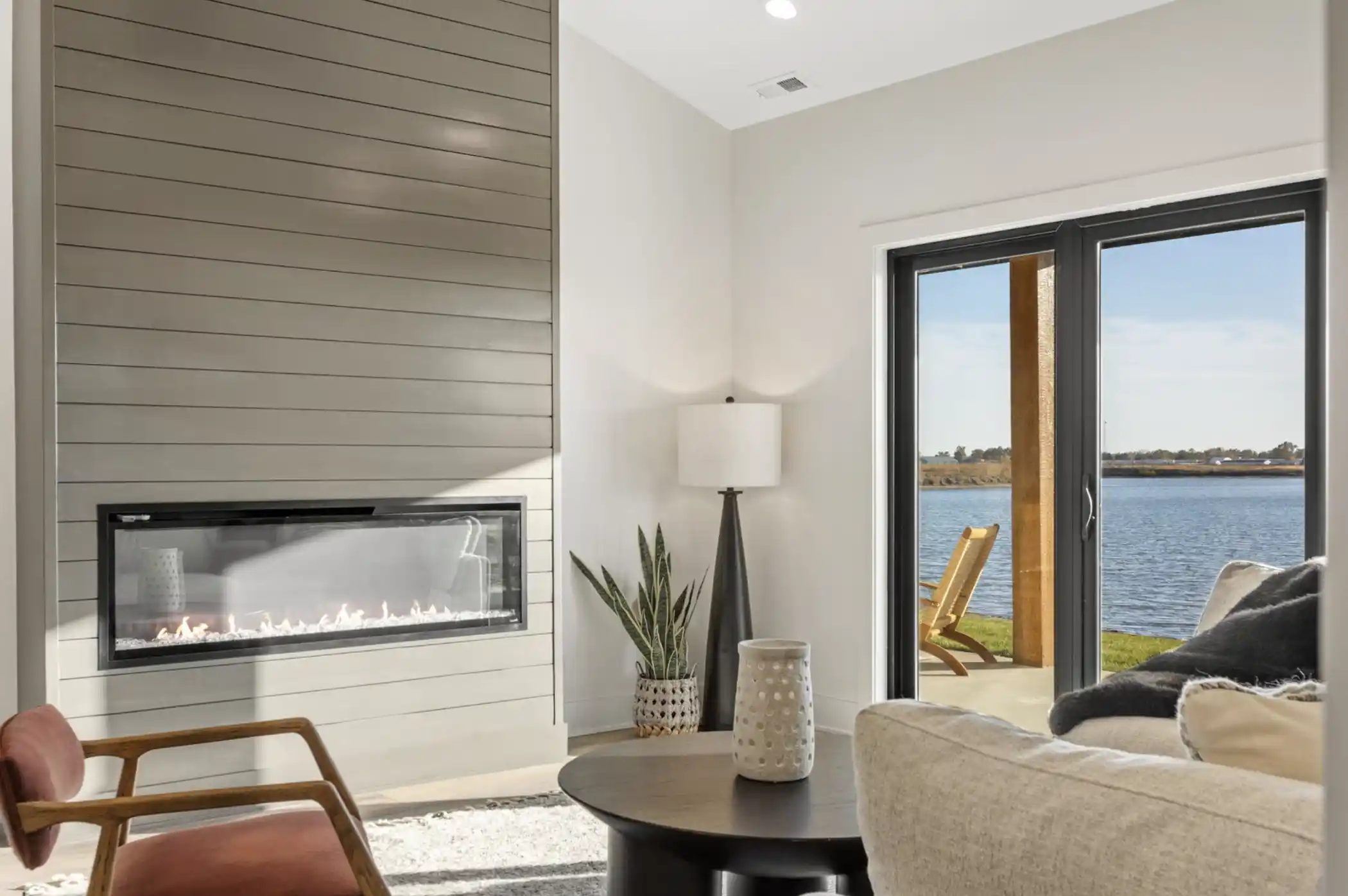 Large windows throughout capture lake views and natural light.