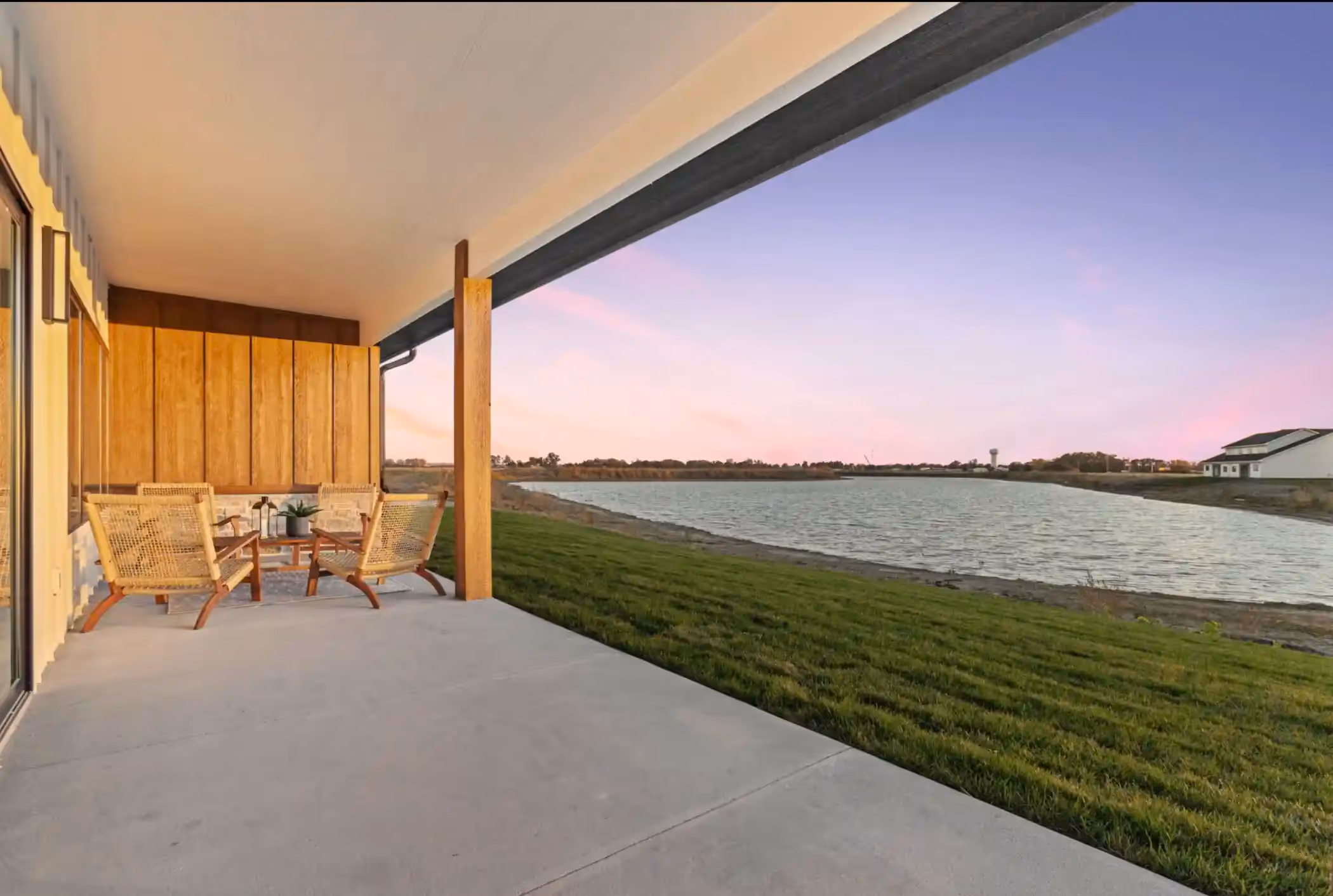 This custom home on Still Water Lake in Nebraska balances contemporary design with practical features for lakeside living.