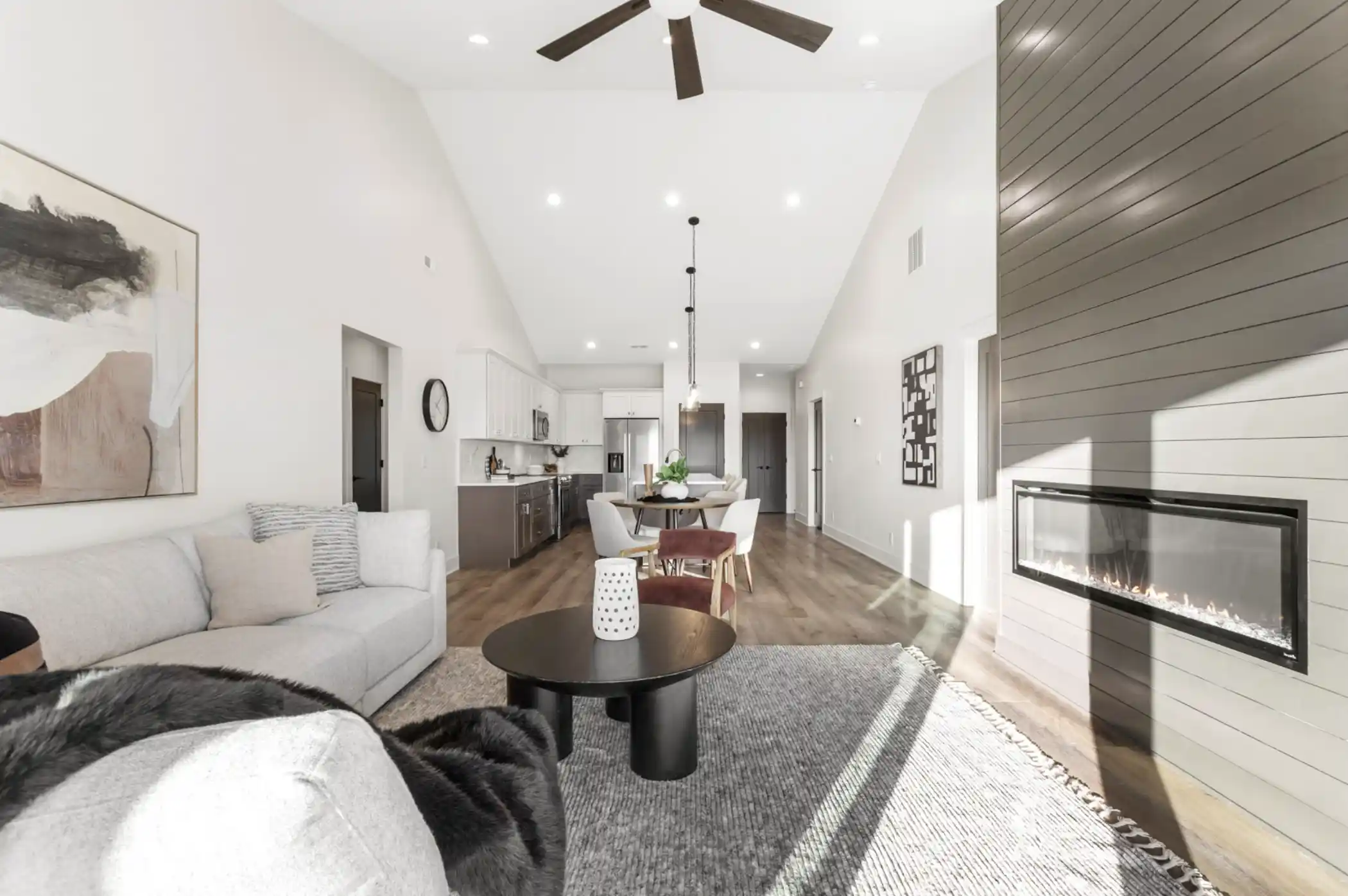 The open floor plan creates natural flow between living areas while maintaining distinct zones for different activities.